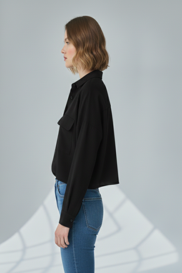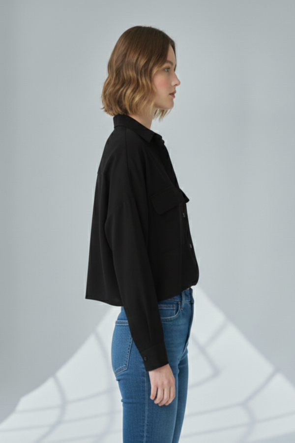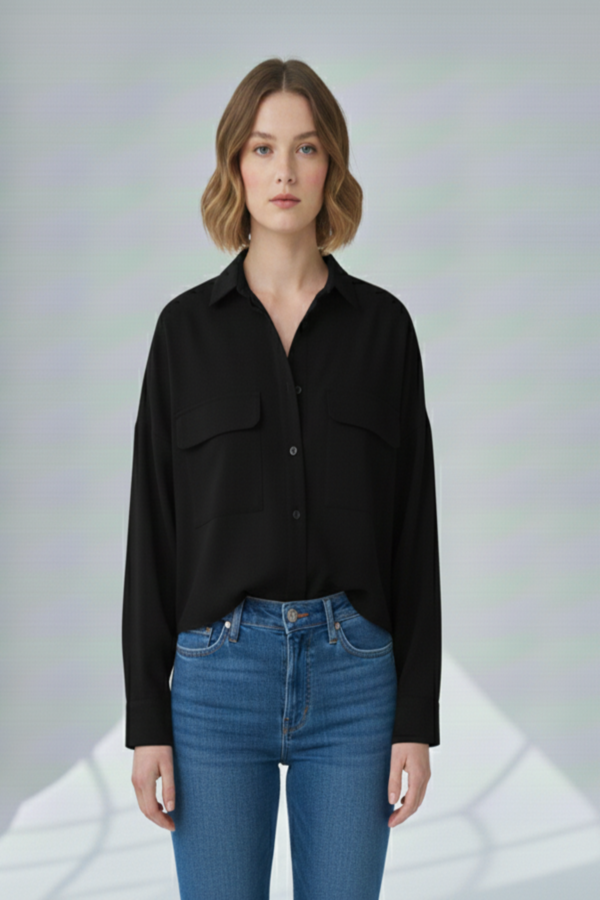OVERSİZE CEPLİ GÖMLEK SİYAH-1